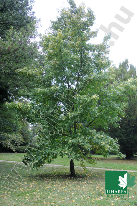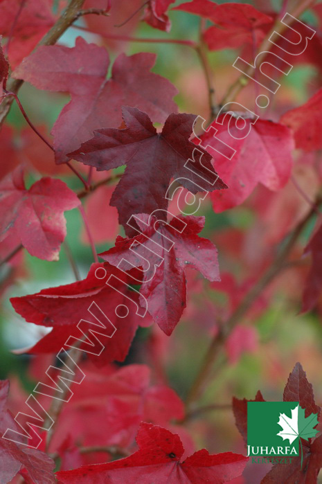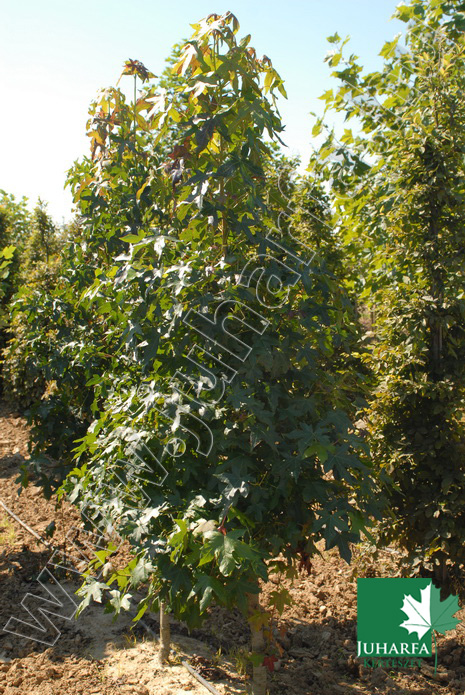 Hazánkban legfeljebb 20 méteres magasságot elérő, szabályos kúpos koronát nevelő, igényes díszfa. Legtöbbször alacsony törzset nevel, vesszei, ágai erősen paralécesek. Levelei nagyok, olyan szélesek, mint hosszúak, 5-7 karéjosak. illatosak. Élénkzöld színűek, fényesek, ősszel narancsvörösre, vörösre színeződnek, s az egész fa csodálatos látványt nyújt.