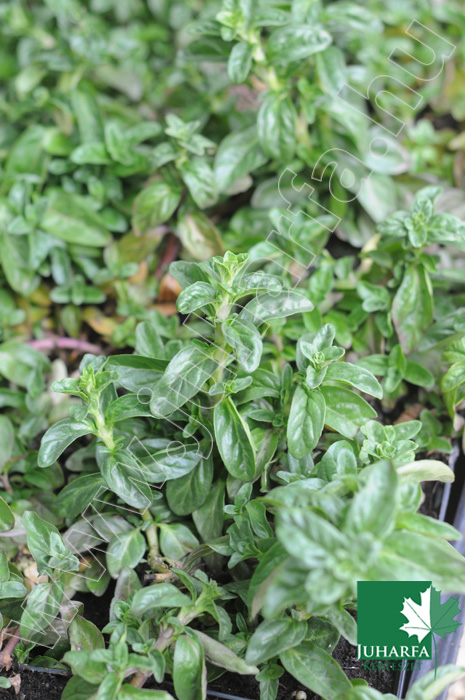 Alacsony, 15-20 centiméteres magasságú, gyorsan fejlődő évelő növény. Levelei fűrészesek, jellegzetesen illatosak.