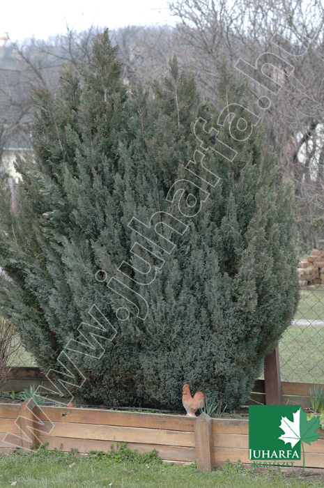 3-4 méteres magasságot elérő, oszlopos habitusú örökzöld. Hajtásai sűrűn állnak, koronája tömött. Levelei ezüstöskékek, nagyon finom érintésűek, egyaránt tű és pikkelylevelekkel.