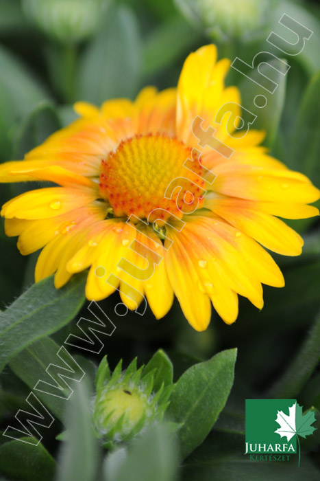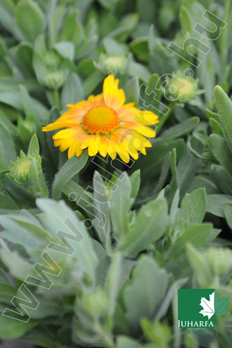 Alacsony, 20-30 centiméteres magasságú bokros évelő. Levelei keskenyek, molyhosak. Virágai kimondottan nagyok, a nyár második felében, kora ősszel nyílnak, a virágok tömege a növény lombját elfedik. A virágok fakó narancs színűek, s peremükön sárga gyűrű van.