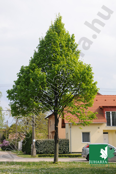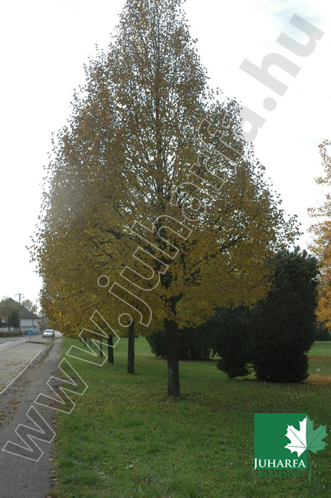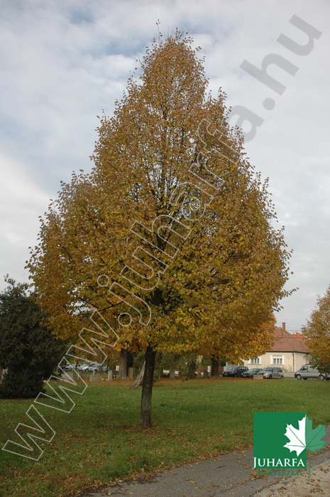 20-25 méteres magasságot elérő, kúpos koronát nevelő, lombhullató díszfa. Törzse egyenes, vesszei ferdén felfelé törők, először zárt kúpos, később tojásdad koronát nevel Levelei tojásdadok, kihegyezettek, fonákukon erősen molyhosak. Virágai sárgásak, illatosak, június végén nyílnak, a fát gazdagon beborítják.