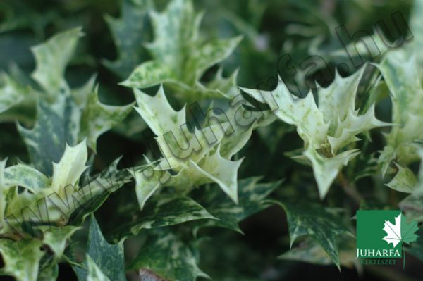 1-2 méter magasságú örökzöld, dús cserje. Vesszei szürkék, tojásdad koronát formáznak. Levelei elliptikusak, szúrósan csúcsosak, kopaszak vékonyak. Virágai későn, szeptemberben nyílnak, fehérek, kellemes illatúak.