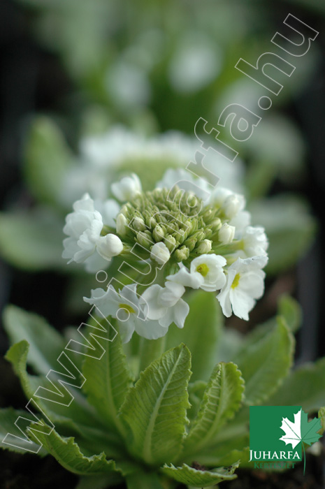 Tőlevélrózsás, alacsony, 20 centiméteres kora tavaszi évelő. Virágszárai kora tavasszal megjelennek, azokon gömb alakban elhelyezkedő hófehér virágzatokat hoz.