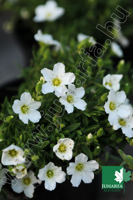 Alacsony, 10-15 centiméteres magasságú, párnát képező évelő. Kompakt növekedésű változat, levelei aprók, virágai fehérek, nagyobbak, májusban az egész növényt beborítják.