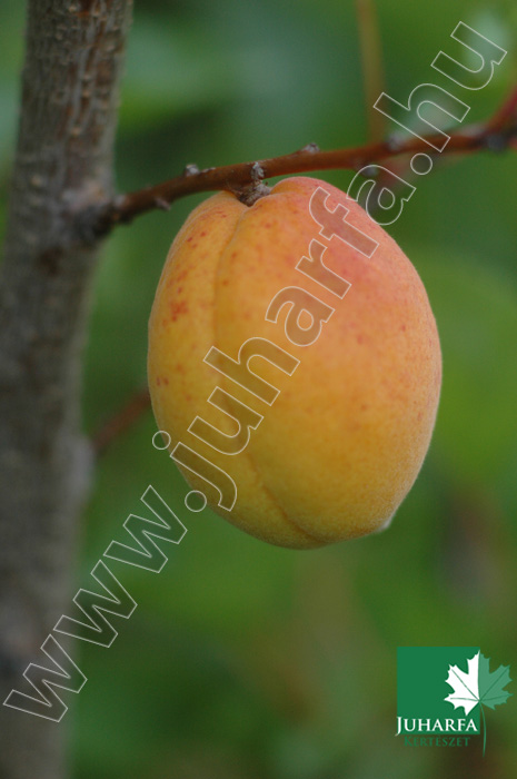 Július közepe után, július 20-a körül érik. Erősen megnyúlt, lapított mandula alakú gyümölcsei nagyok. Héja világos narancssárga, a napos oldalon piros pontozással és bemosódással. Húsa világos narancssárga, közepes keménységű, lédús, kellemes ízű. Későn fordul termőre, de utána bőven terem. Későn nyíló virágainak gyenge az öntermékenyülése.