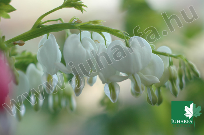 Magasnövésű, 50-60 centiméteres nagyságú, bokrosodó évelő, elvirágzás után visszahúzódik.Levelei vékonyak, élénkzöldek. Virágai jellegzetesek, fehér színűek, szív alakúak az oldalra álló virágszáron csüggenek, április-májusban nyílnak.