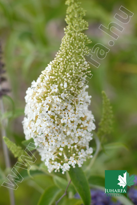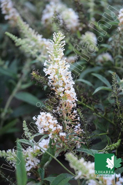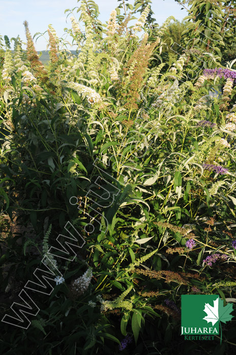 agyméretű, 2-3 méteres magasságot elérő, dekoratív cserje. Ágrendszere laza, meglehetősen kusza, vesszei gyakran lehajlóak. Levelei hosszúkásak, fonákukon ezüstösen molyhosak. Hazánkban eredetileg lombhullató, azonban enyhe teleken levelei sokáig rajta maradnak. Fő díszértéke hosszú bugákba tömörülő illatos virágai, amelyek nyár közepétől gyakran októberig nyílnak. Fehér virágszínű fajta.