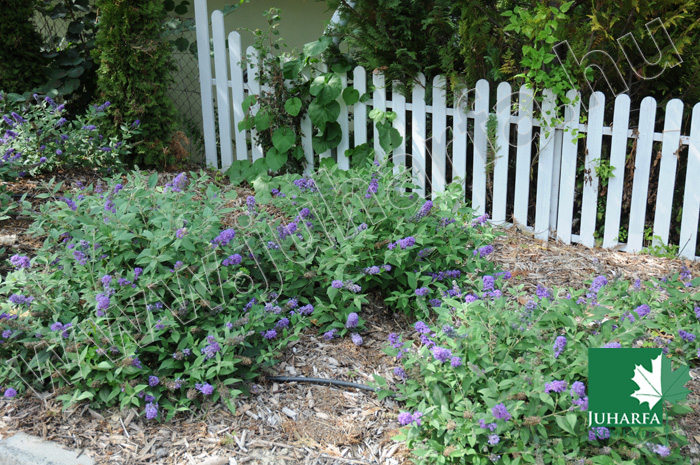 Fő díszértéke hosszú bugákba tömörülő illatos virágai, amelyek nyár közepétől gyakran októberig nyílnak. Középkék virágszínű fajta.