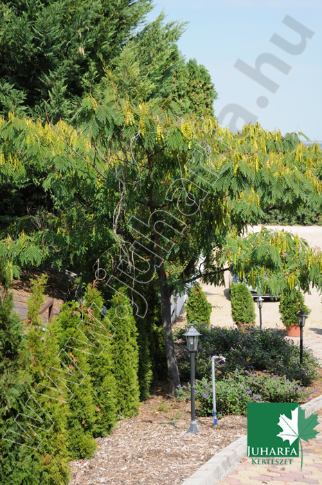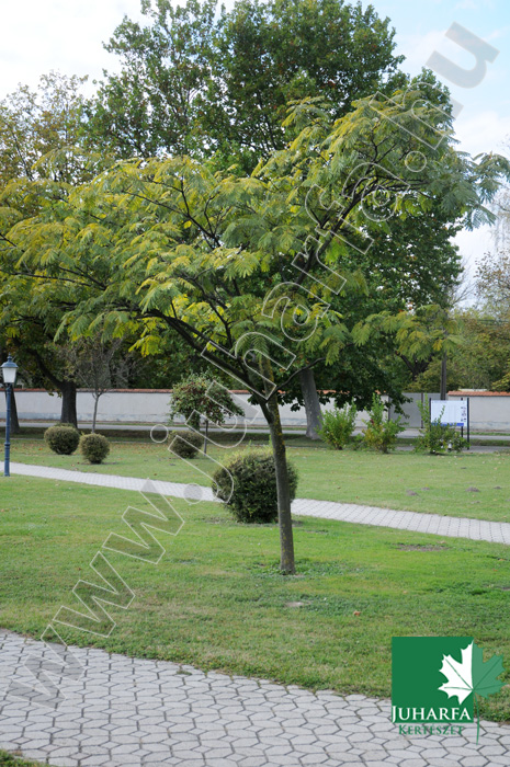 6-8 méteres magasságú, széles, ernyő koronájú, lombhullató fa.