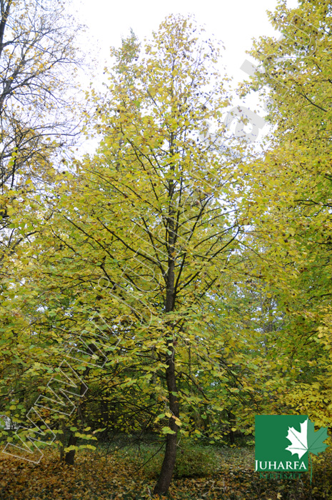 Szabályos, kúp alakú koronát nevelő 15-20 méter magas fa. Kérge jellegzetes, hosszan repedezett, kellemes tapintású, puha, vesszei parásodnak. Levelei nagyok, kihegyezettek élénkzöldek, ősszel sárgára színeződnek. Nagyméretű barkavirágzatai februárban nyílnak. Terméseit nagy, kusza kupacsok veszik körül, az érett termések kihullanak belőle. Termései ízletesek.